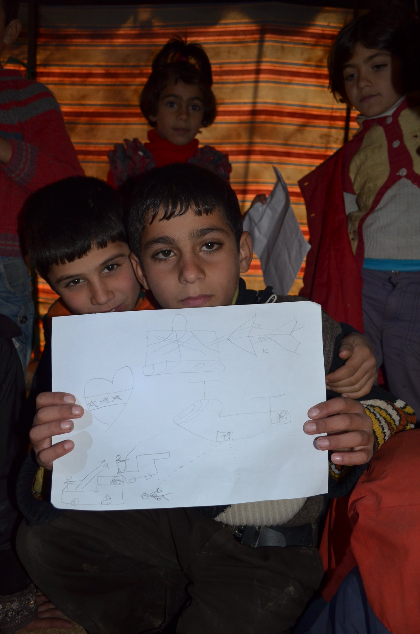 [1] أثبتت هذه الموارد البسيطة – الأوراق والأقلام – أنها مواد لا تقدر بثمن، إذ لم ير أطفال المخيم أيًا منها منذ أشهر. كان بعضهم يعرض علي ما لديه من نقود قليلة ليحتفظ بقلم رصاص، ولكن لم يكن بإمكاني الاستغناء عن أي منها لحاجتي لها في الأنشطة التي كنت أقوم بها. لم يكن هناك سوى ذلك الكثير مما يمكنني استخدامه عدا ذلك: كانت الموارد شحيحة ومرتفعة الثمن حين توفرها (كانت الليرة السورية آنذاك قد فقدت نصف قيمتها)، ولم يكن لأغلب النازحين أي مورد مالي. كل ما يمكن إحراقه (خشب، أكياس وقوارير بلاستيكية، ملابس غير مناسبة) كان يستخدم للتدفئة غالباً. المادة الوحيدة التي تبقت لي وفكرت باستخدامها كانت الطين رغم عدم خبرتي بها، ولكن برودة الجو وصعوبة الاغتسال وصعوبة الحصول على رعاية طبية مناسبة عند المرض جعلتني أعدل عن ذلك. العودة إلى التدوينة