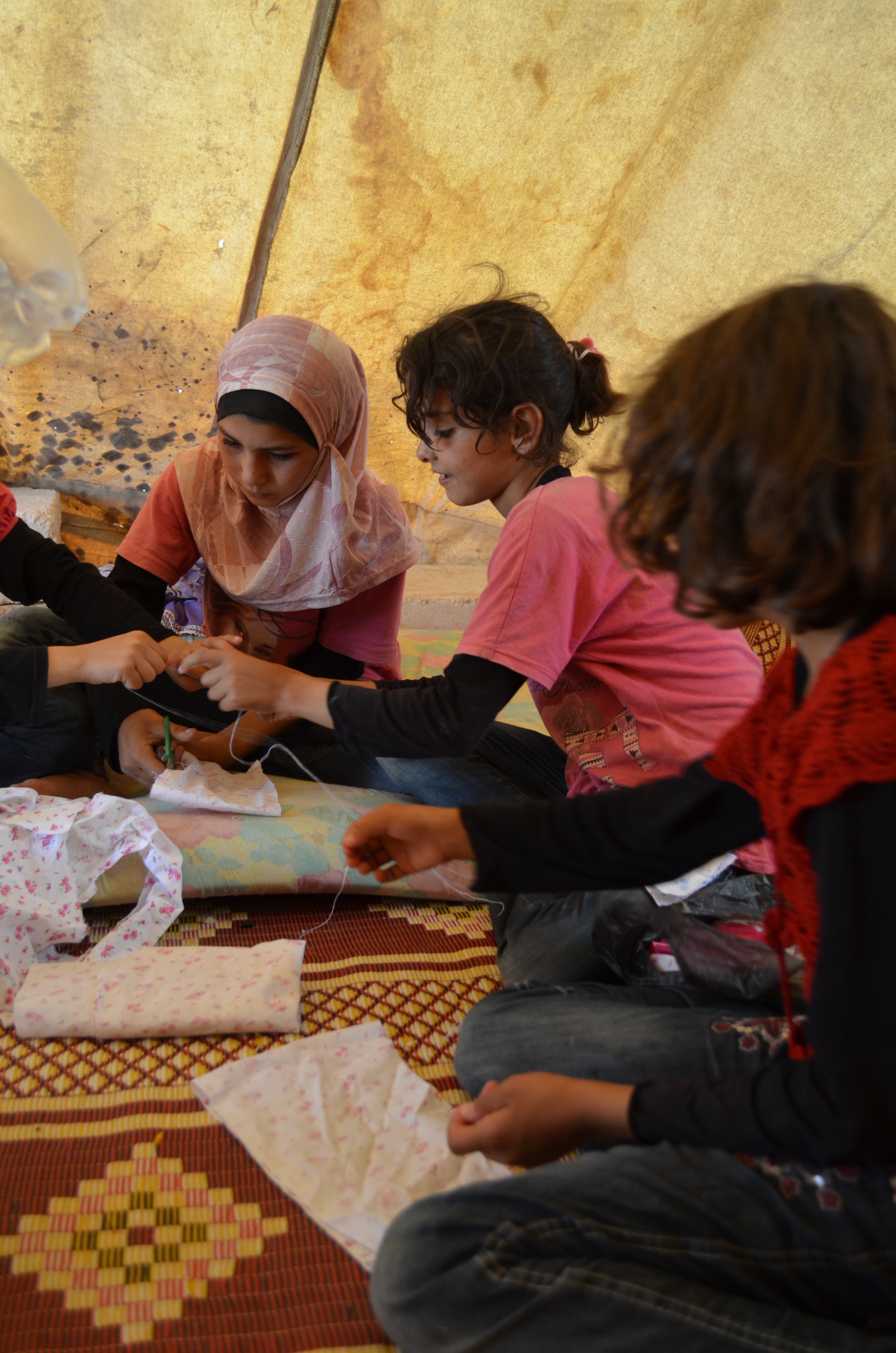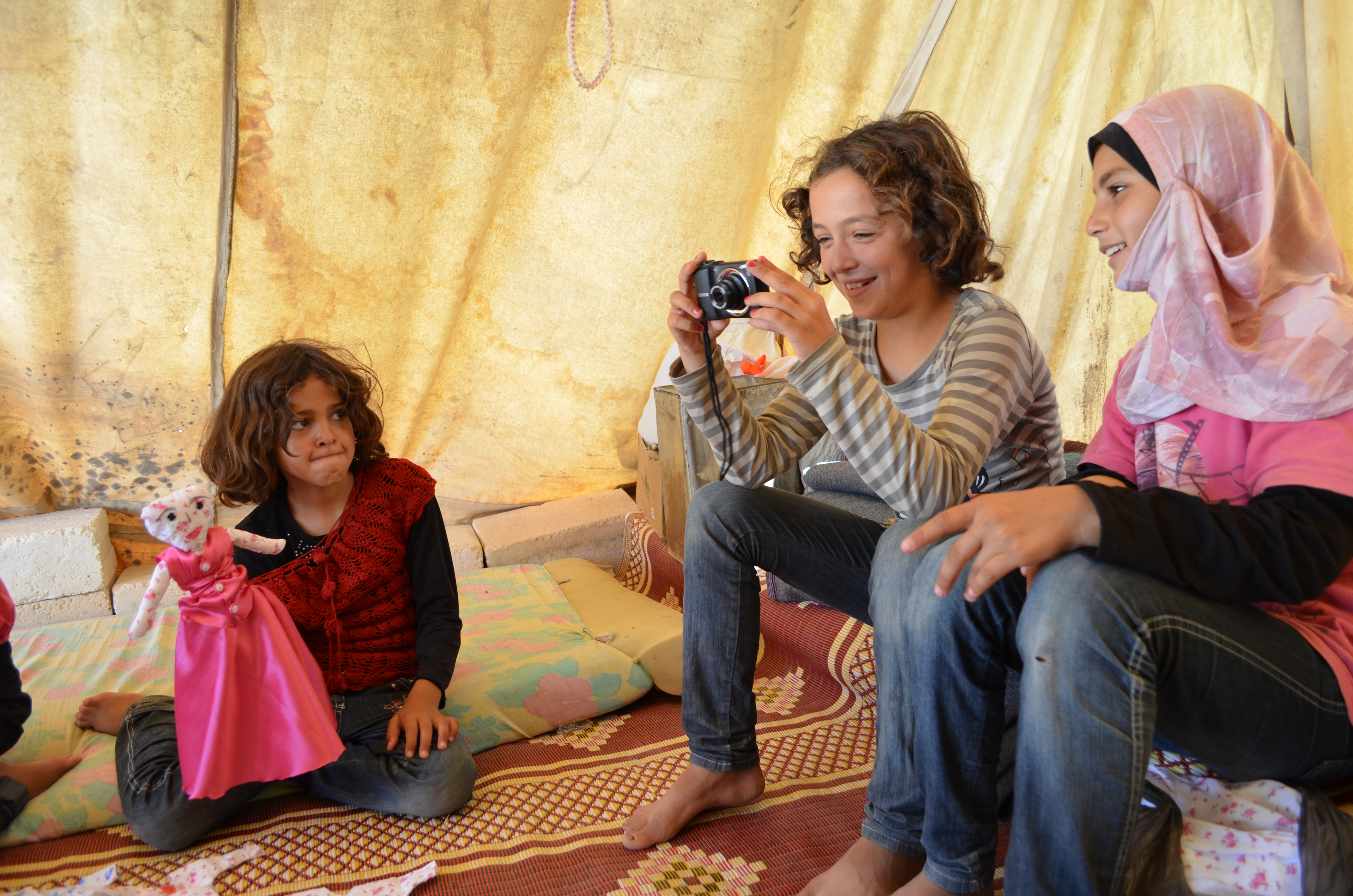 وهكذا بدأنا. تركت للبنات مهمة التحدث إلى أم فاطمة وشرح ما نريد فعله، ولما وافقت أحضرت لها الأشياء التي ارتأت أننا سنحتاجها في عملنا. تركت مع البنات آلة تصوير ليلتقطن صورًا أثناء العمل فيما كنت بعيدًا عنهن. كان علي الانتقال إلى مخيم آخر، ولكني عدت عصر كل يوم لرؤيتهن.