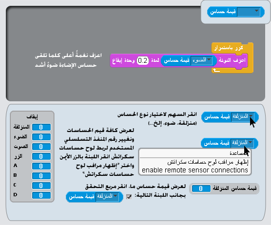 شاشات المساعدة للغة سكراتش (الإصدار 1,4) تنزيل شاشات المساعدة (مجلد مضغوط) الحركة المظاهر الصوت القلم التحكم التحسس العمليات المتغيرات الحركة المظاهر الصوت القلم التحكم التحسس العمليات المتغيرات شارك هذه التدوينة:مشاركة انقر للمشاركة على فيسبوك (فتح في نافذة جديدة) فيس بوك النقر للمشاركة على X (فتح في نافذة جديدة) X إعجاب تحميل...